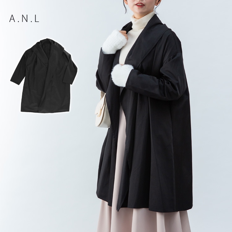 ロングコート ブラック マント 薄手 ドロップショルダー オーバーサイズ A.N.L エー・エヌ・エル PF-802506A3 38