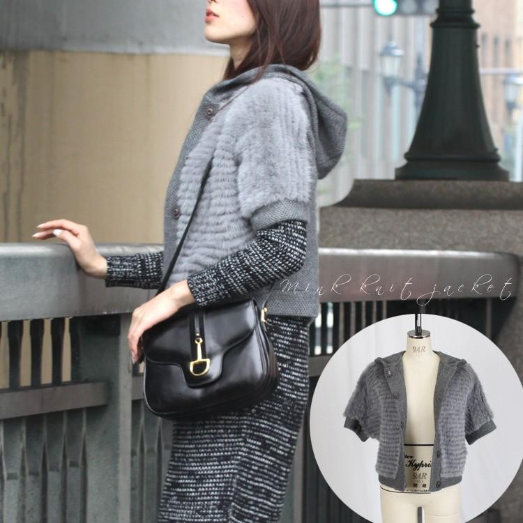 ミンク ファー カシミヤ混 ニット フード ジャケット ショートタイプ