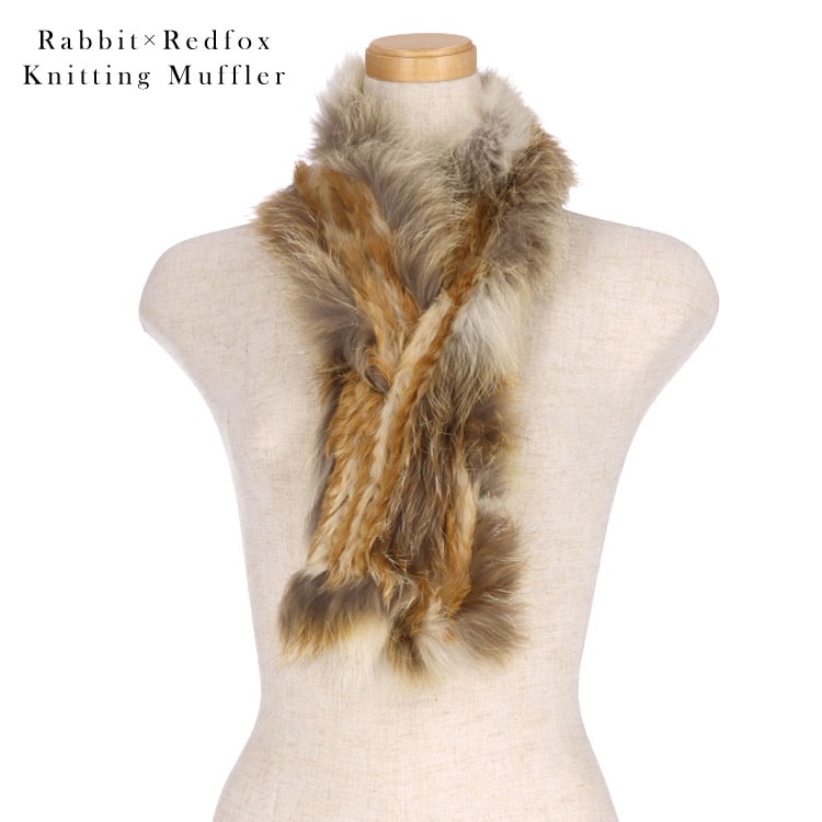 ラビット レッドフォックス ファー マフラー 編み込み ニッティング ナチュラルカラー
