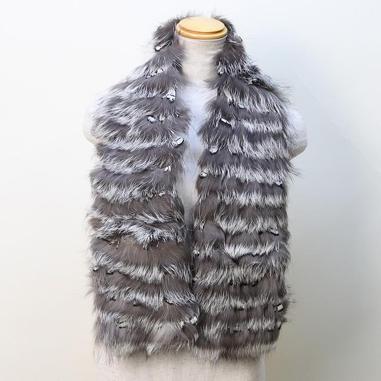 【セール】 ストール マフラー シャドー フォックス ファー ニット ジレ ロング