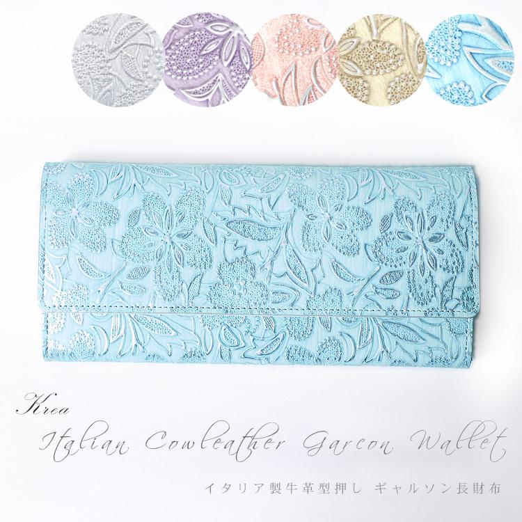 クレア イタリア製 牛革 花柄 ギャルソン 長財布 かぶせ 送料無料 1420-623