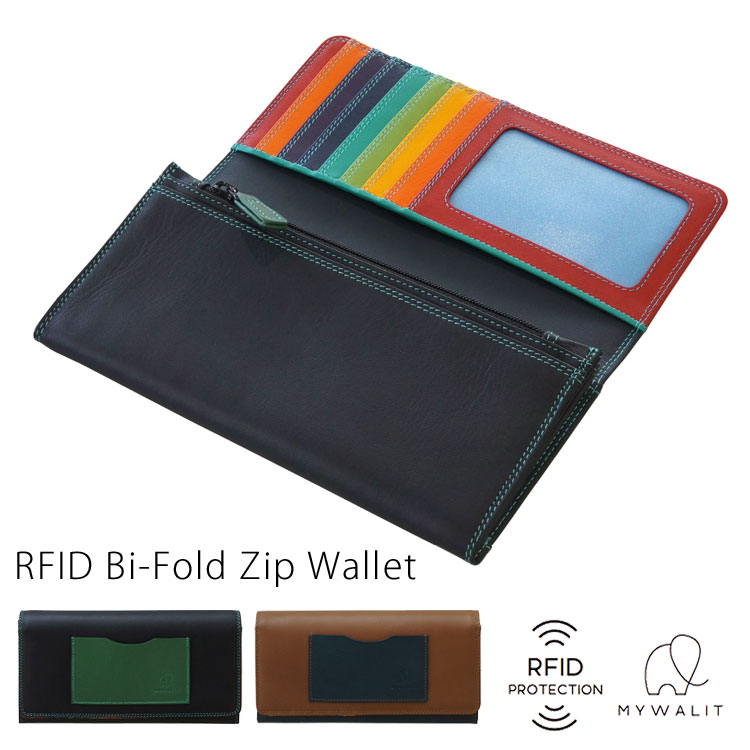 mywalit RFID レザー 長財布 二つ折り MY1427 牛革 スキミング防止 薄い財布 スリム