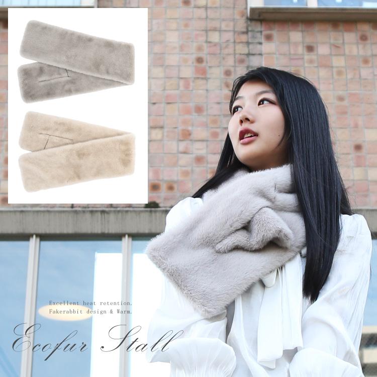 エコファー マフラー フェイクファー ティペット ラビット風 グレー ベージュ