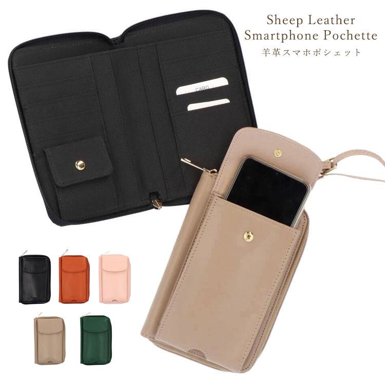 羊革 スマホポシェット マルチポシェット 本革 お財布ポシェット ショルダーバッグ 4177