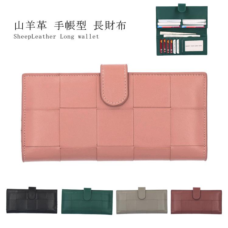 羊革 長財布 シープレザー 手帳型 メッシュ 編み込み 本革