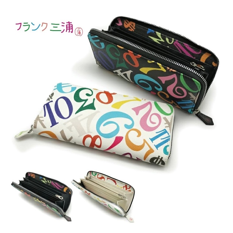 フランク三浦 長財布 ラウンドファスナー 合皮 財布 モノグラム風 カラフル 数字 レディース