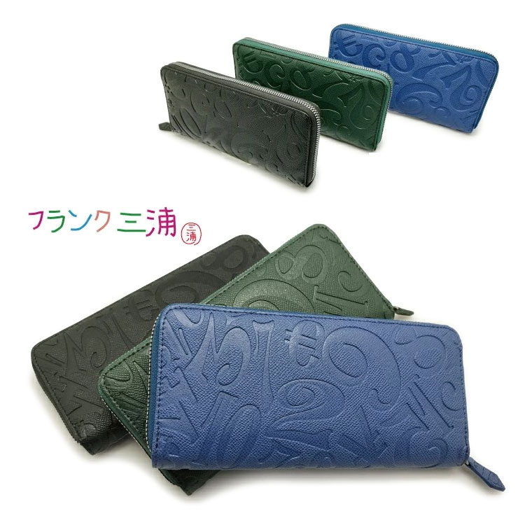 フランク三浦 長財布 ラウンドファスナー 合皮 財布 単色 モノグラム風 型押し 数字