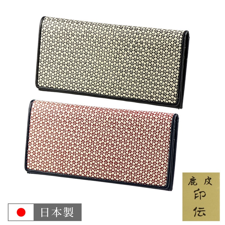 かぶせ 長財布 鹿革 豚革 本革 8177 二つ折り スリム 薄い 札入れ ディアレザー ピッグレザー 小桜 印伝 ギフト プレゼント