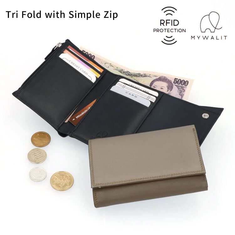 mywalit RFID カーフレザー 牛革 三つ折り スキミング防止 財布 コンパクト 薄い ミニ財布 MY4511 Try Fold with Simple Zip